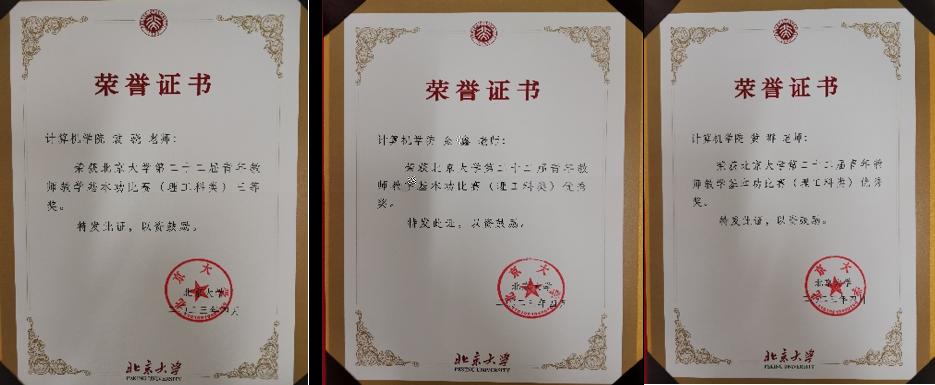 袁骁老師,榮獲北大第22屆青教賽(理工科類)三等獎。